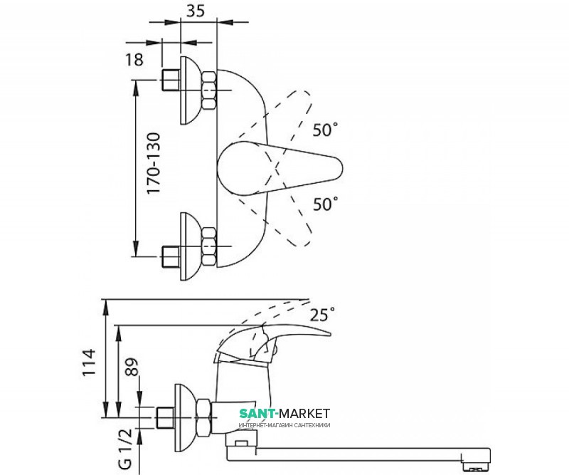 Смеситель для кухни Ferro Ancona однорычажный настенный BAN5