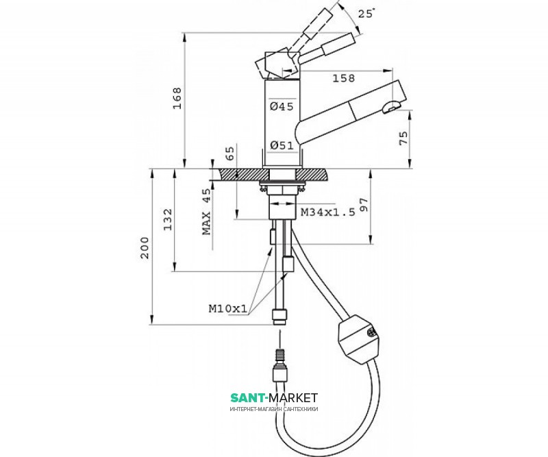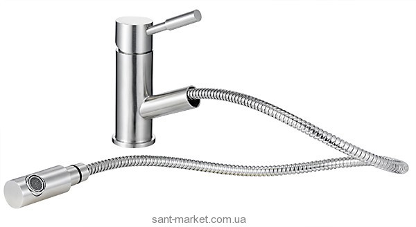 Однорычажный смеситель для мойки с вытяжной лейкой. Материал поверхности из нержавеющей стали