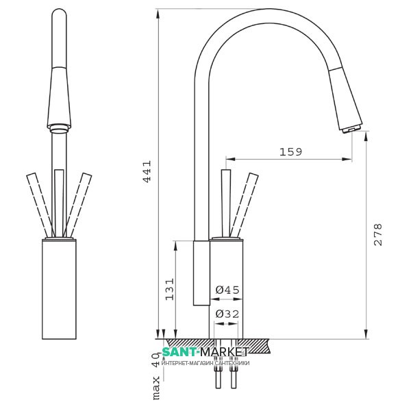 - изготовлен из благородной стали AISI 304, гибкий подвод G 3/8 - M10x1