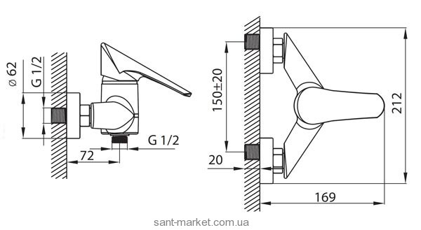 Смеситель для душа настенный однорычажный Ferro коллекция Cassino хром BCS7VL