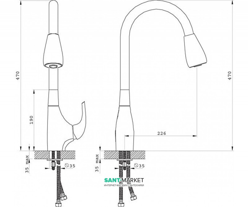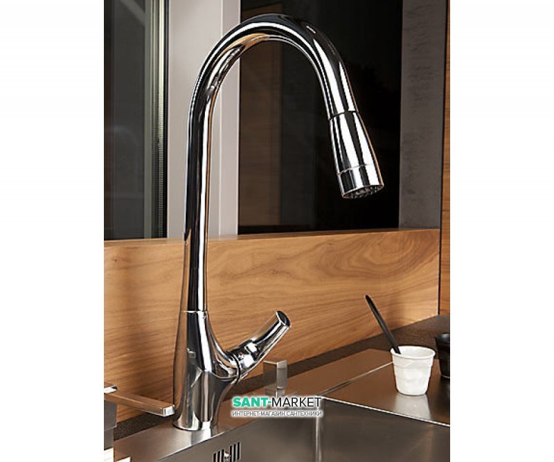 Смеситель для кухни с выжвижнйо лейкой Ferro Genova однорычажный BGE8AVL