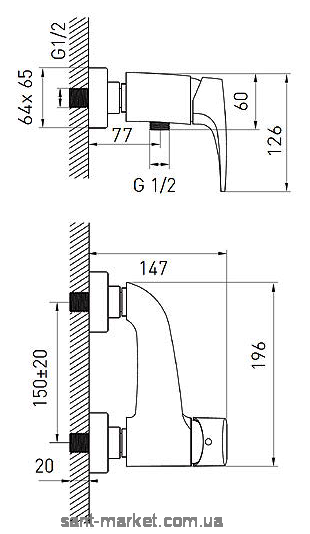 Смеситель для душа настенный однорычажный Ferro коллекция Justic хром BBJ7VL