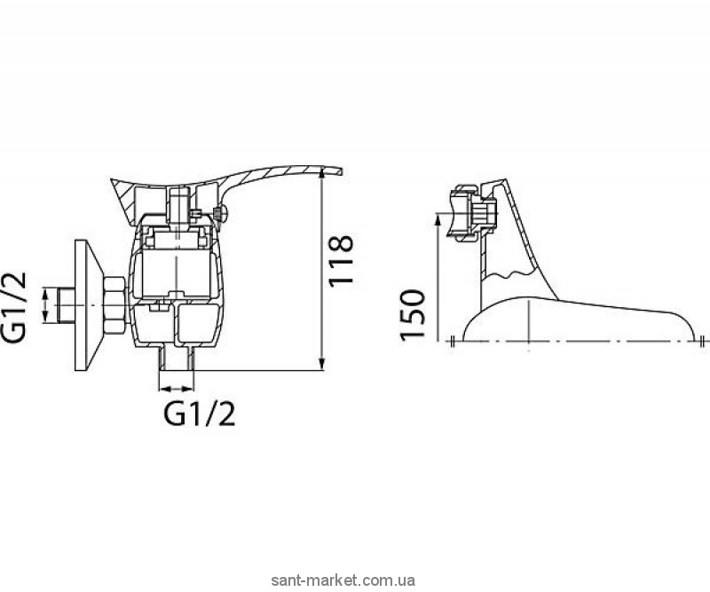Смеситель для душа настенный однорычажный Ferro коллекция Padwa сатин PVD BTP7PVD