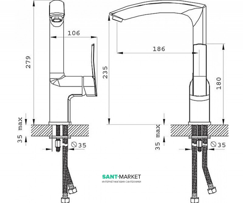Тип смесителя: на одно отверстие смеситель внешнего монтажа