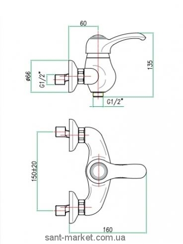 Смеситель для душа настенный однорычажный Fiore коллекция Jafar хром 47CR5120