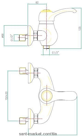 Смеситель для душа настенный однорычажный Fiore коллекция Jafar золото 47CR5120 Gold