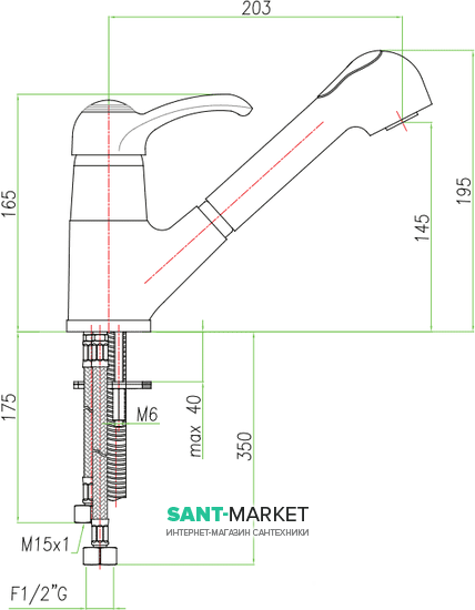 Смеситель для кухни с выдвижной лейкой Fiore Jafar однорычажный ретростиль 47CR4010 Old Bronze