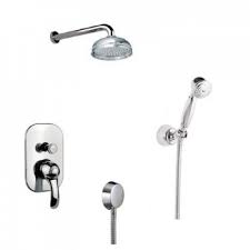 Смеситель скрытого монтажа для душа, в комплекте с верхним душем настенного монтажа, ручным душем, шлангом и настенным держателем