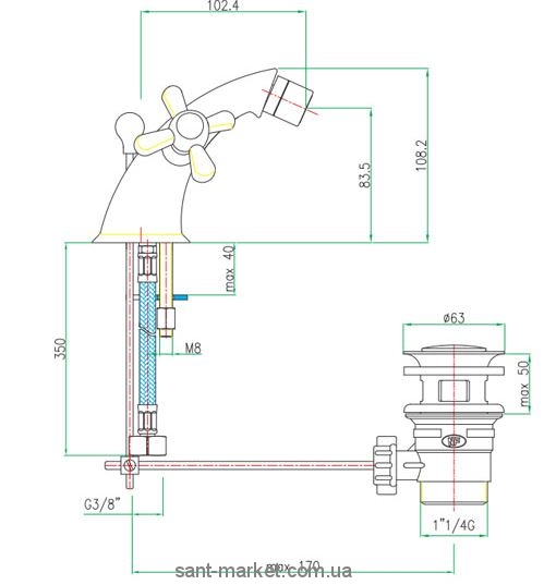 Смеситель для биде в ретро стиле, с гибкой подводкой и донным клапаном