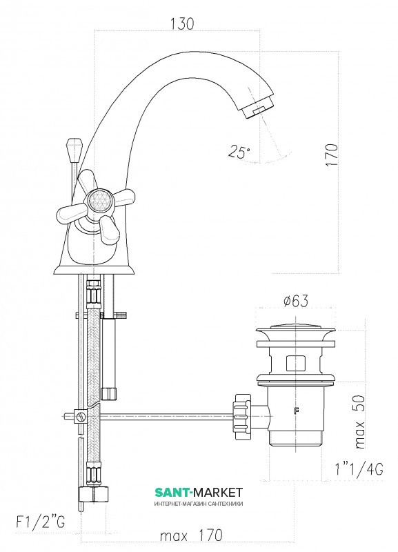 Смеситель для раковины двухвентильный с донным клапаном Fiore Margot-Sky бронза 01062800 Old Bronze