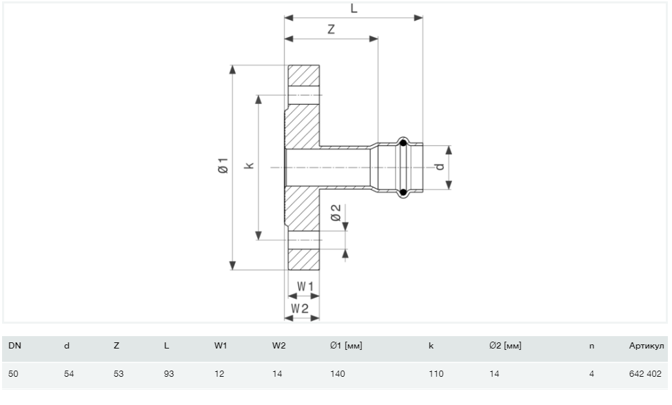 1) Фланцевый переход Viega Prestabo 1159.1 54 (DN50) нелегированная сталь