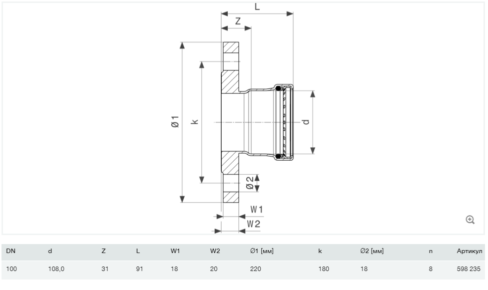 1) Фланцевый переход Viega Prestabo XL 1159XL 108 (DN100) нелегированная сталь