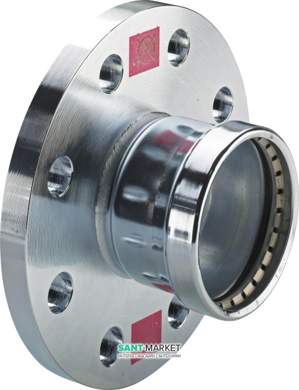 жестко зафиксированный фланец PN 10/16, уплотнительный элемент EPDM, металлическое стопорное кольцо для надежной фиксации фитинга на трубе, разделительное уплотнение