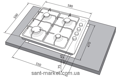 Размеры ниши для встраивания (ШхГ) 3х55х47 см
