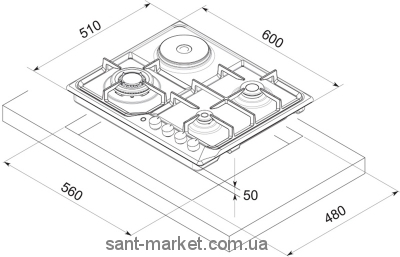 Размеры ниши для встраивания (ШхГ) 5х56х48 см