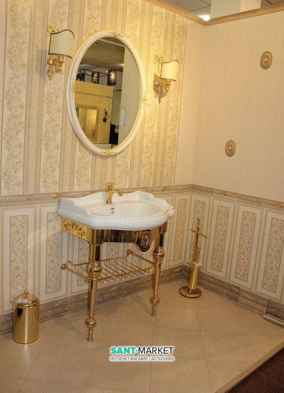 Глянцевая глазурь кремового оттенка в золотых вкраплениях перламутра имитирует текстуру нежной ткани. Элегантный декор из цокольных, настенных панелей, украшенных витиеватыми узорами и рельефных бордюров с изящными медальонами, наполнит интерьер уютной и теплой, романтической атмосферой и ощущением спокойствия и блаженства.