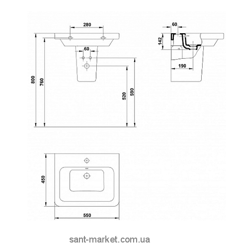 Раковина для ванной подвесная Gala коллекция Street Square белая G0504001