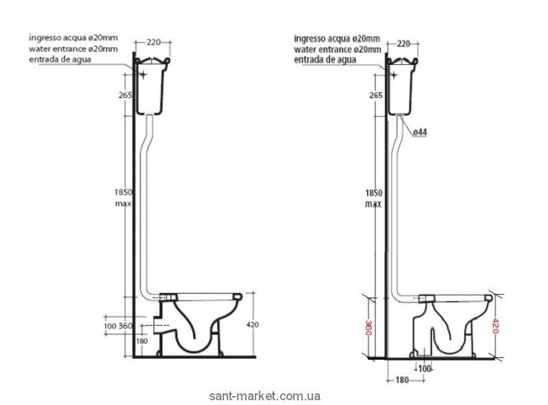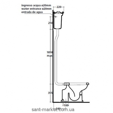Galassia Ethos 8410 Высокий подвесной сливной бачок для унитаза. Для монтажа с унитазом 8403 (8402) и высокой сливной трубой 9054 (сливной механизм в комплект не входит!). Размер 47х22х37 см. Цвет белый глянцевый.