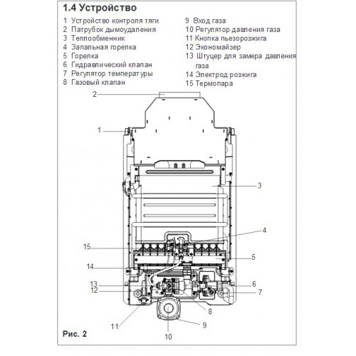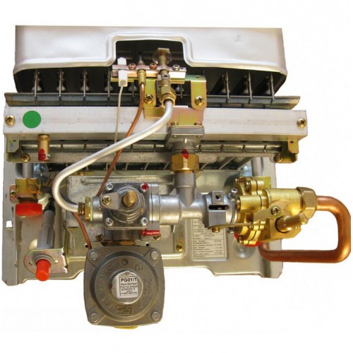 - Газовая горелка из нержавеющей стали с плавной регулировкой мощности в зависимости от расхода воды через водонагреватель