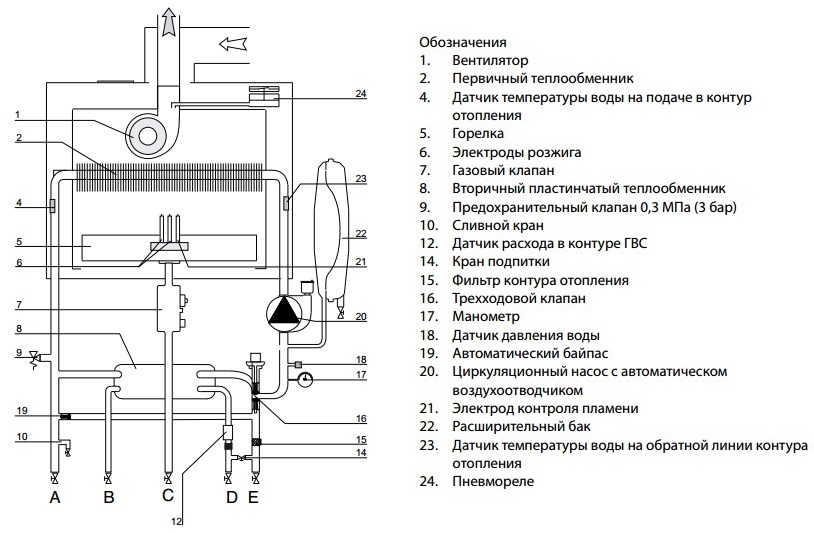 Труба для отвода продуктов сгорания/притока воздуха не предусмотрена производителем в комплектации котла и приобретается отдельно.
