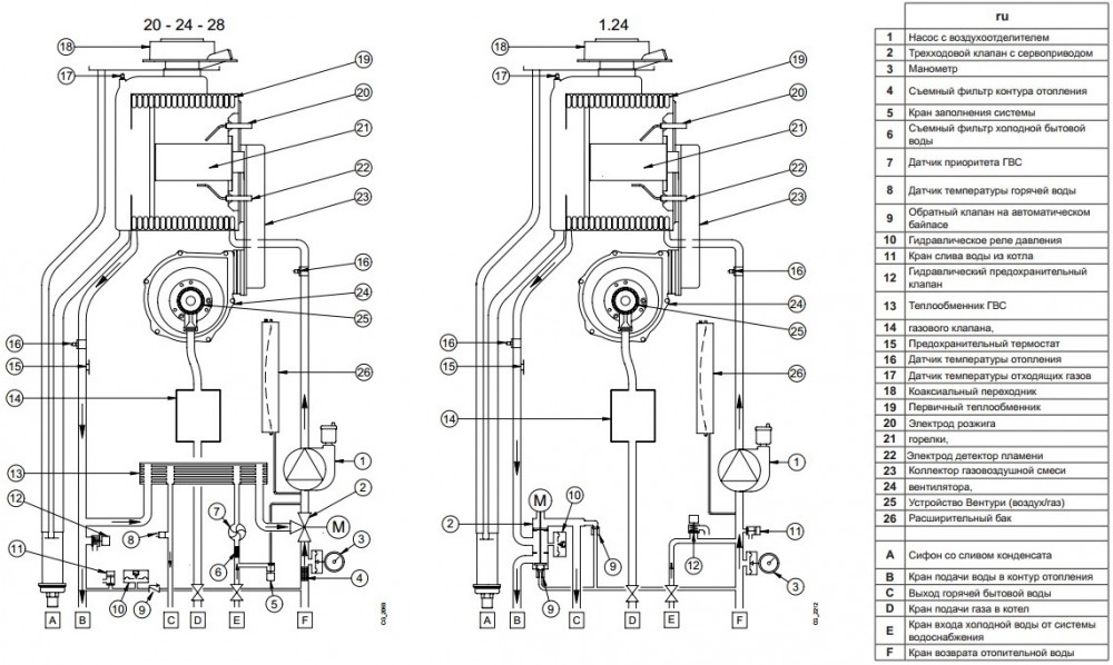 - Предохранительный клапан в контуре отопления (3 атм.);