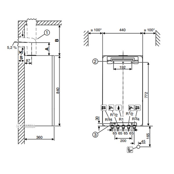 1) Газовый настенный конденсационный котел Bosch GC7000iW 14/24 CB 23