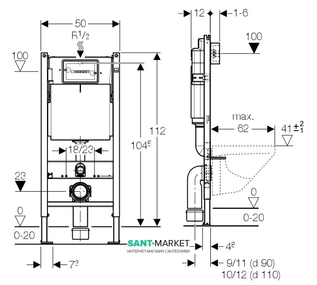 Система инсталляции для подвесных унитазов Geberit Duofix 4в1 50х112х12 458.168.21.1