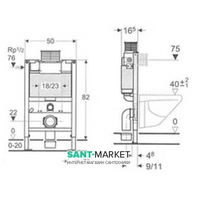 Система инсталляции для подвесного унитаза Geberit Duofix 50х82х16 111.240.00.1