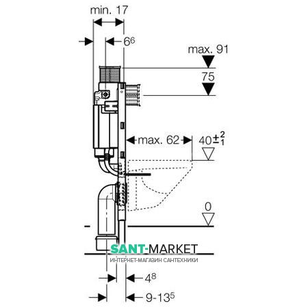 Бачок скрытого монтажа, полностью герметизированный от попадания конденсата. Самонесущая конструкция, самостопорящиеся оцинкованные опоры в пол с метками для выравнивания элемента без применения инструментов. Поворотная опорная площадка.