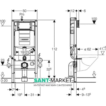 Система инсталляции для подвесного унитаза Geberit Duofix 50х112х12 111.370.00.5