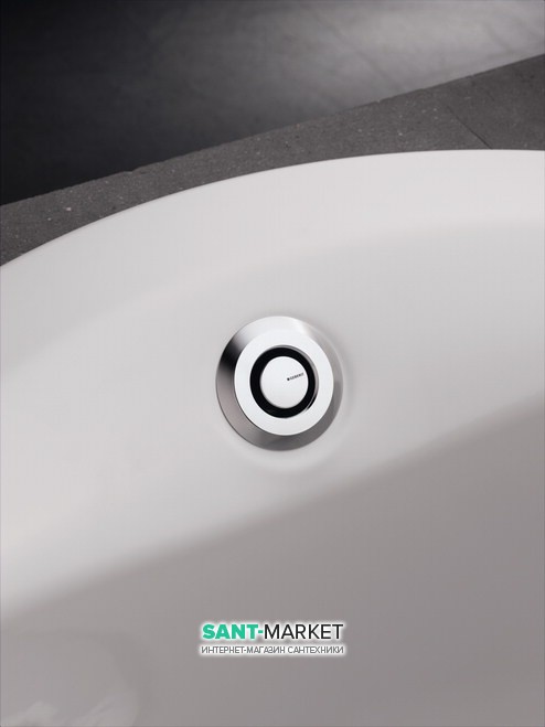 Слив для ванны с системой нажатия кнопки, находящейся почти на одном уровне с ванной