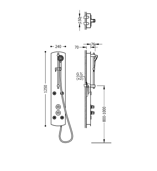 Гидромассажная панель для душа Tres Lex-D анодированное покрытие