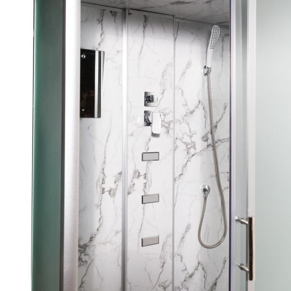 Гидромассажный бокс Vivia TKF 7715 Белый мрамор BG 120х80 профиль сатин/стекло fabric А0048640