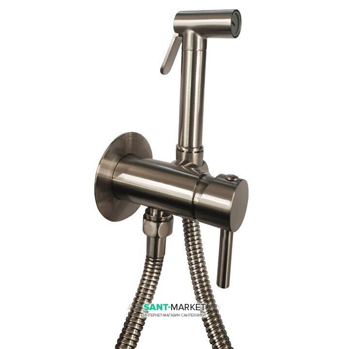 Гигиенический душ Paffoni Tweet Round Mix со смесителем и шлангом нержавеющая сталь
