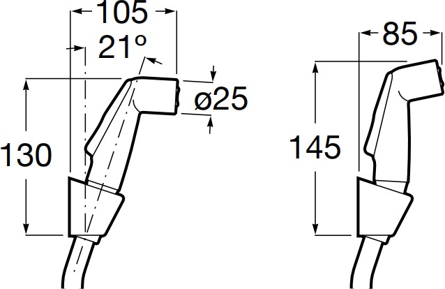 Удобный и надежный гигиенический душ Roca Be Fresh - лейка для биде для настенного монтажа диаметром 25 мм. В комплект входит гибкий шланг и крепление на стену.