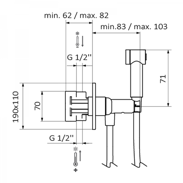 Гигиенический душ с термостатом GRB Intimixer Horizontal латунь хром 08315320