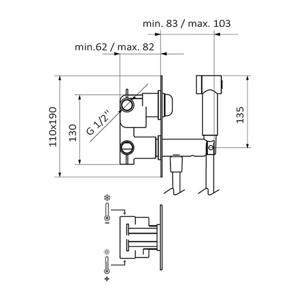 Гигиенический душ с термостатом GRB Intimixer Vertical латунь хром 08316320