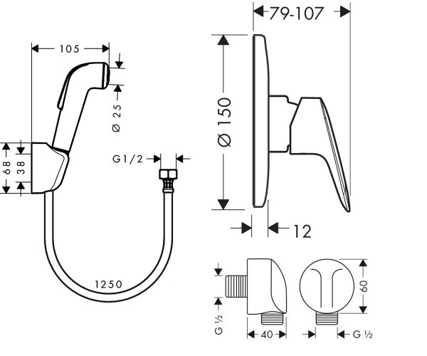 Гигиенический душ со смесителем скрытого монтажа Hansgrohe Logis хром