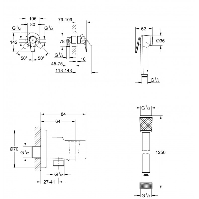 - Смотреть другие: Гигиенический душ со смесителем Grohe