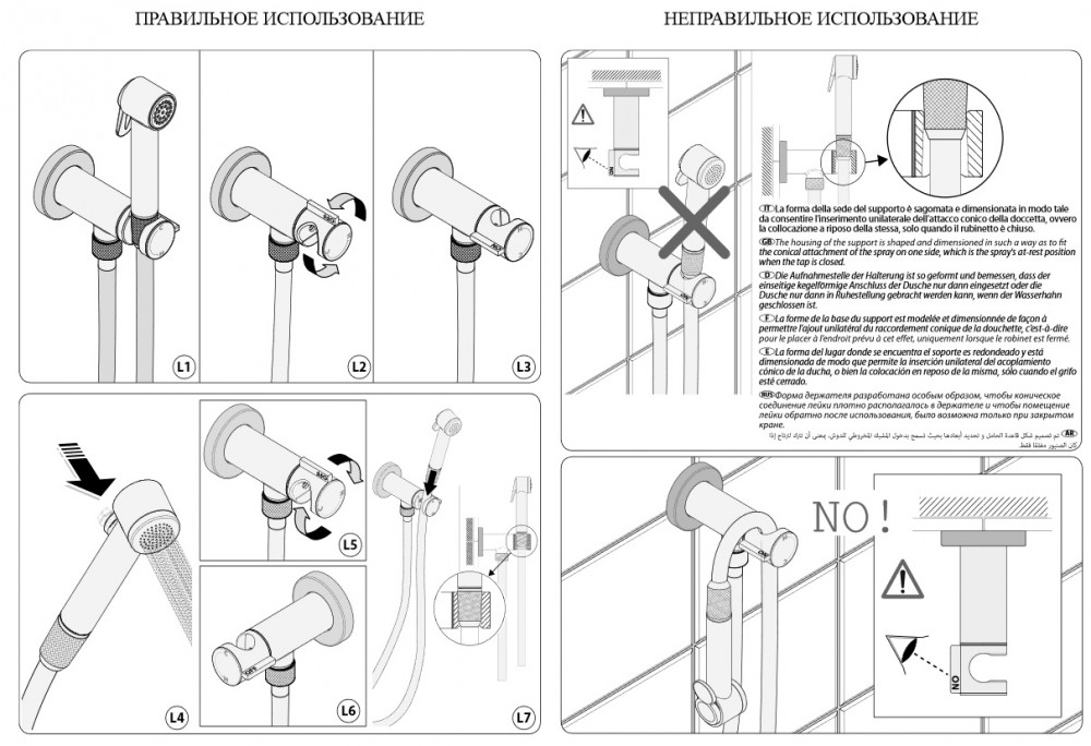 Оригинальная форма держателя лейки поможет пользователю не забыть переключить воду после использования. Комплект обеспечивает максимальный комфорт, высочайшую степень защиты, минимальные размеры и стильный дизайн.
