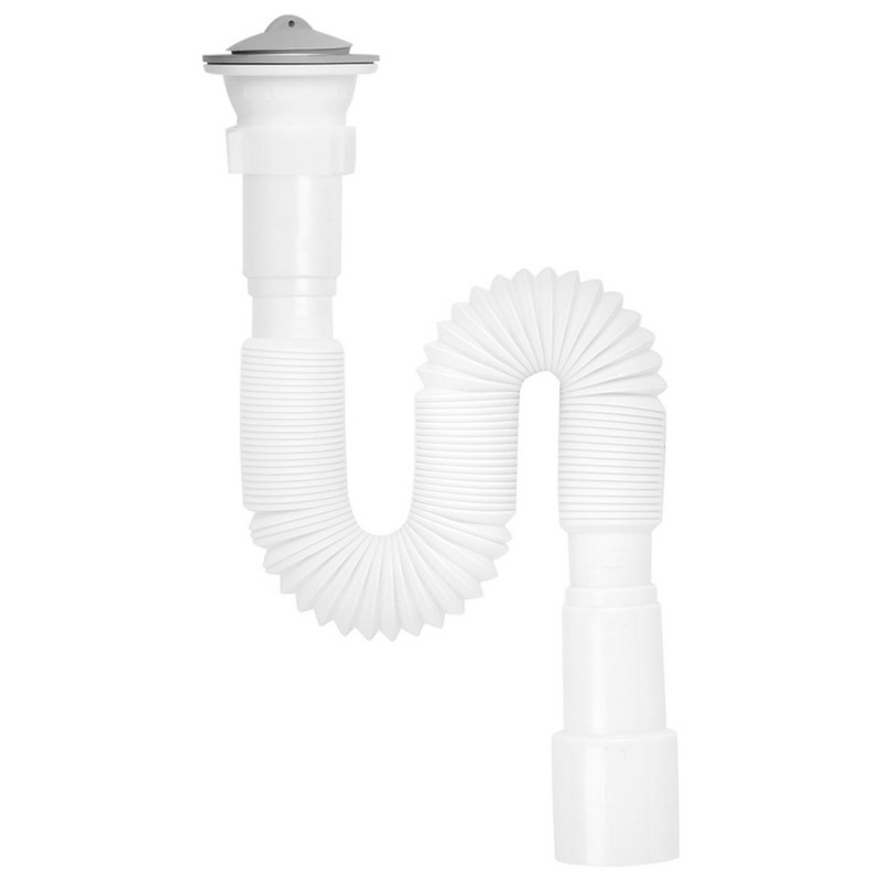 Сифон изготовлен из высококачественного пластика, который обеспечивает надежность и долговечность в эксплуатации. Он спроектирован для использования как в раковинах, так и на кухне, что делает его универсальным решением для различных санитарных потребностей. Внешний вид сифона дополняется нержавеющей стальной решеткой, которая помимо эстетической функции также служит барьером для предотвращения попадания мусора и других мелких частиц в систему водоотвода.