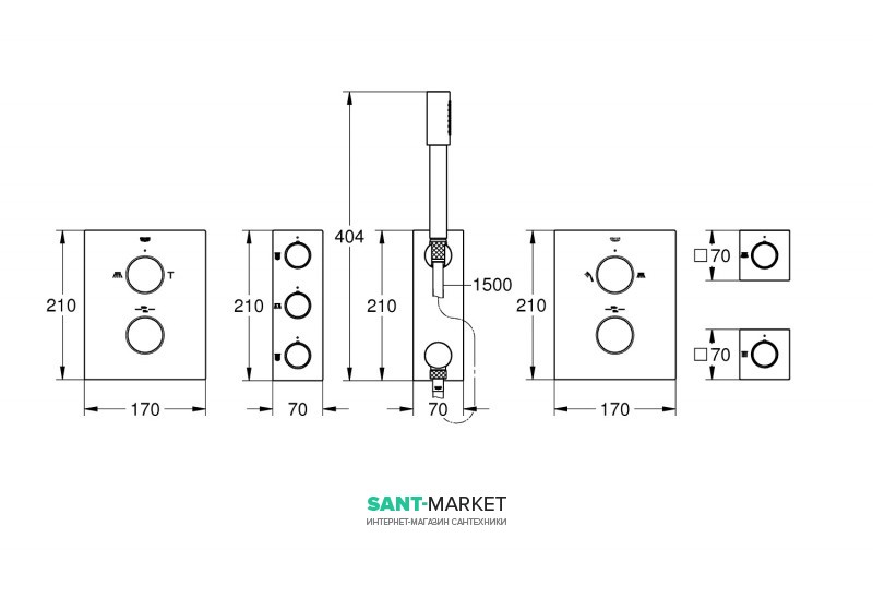 термостат и встраиваемые части должны быть заказаны дополнительно