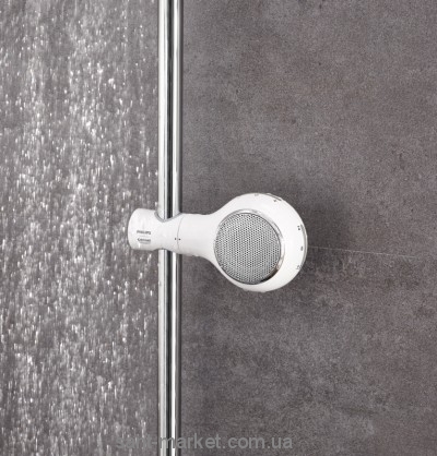 Система Aquatunes разработана специально для использования прямо в душе, поэтому она абсолютно водонепроницаема и не боится не только брызг, но и выдерживает полное погружение в воду. Крепление Aquatunes легко устанавливается на любой стандартной душевой штанге (диаметр 20–25 мм), и его не придется снимать при желании переместить саму колонку в любое место ванной комнаты. Динамик соединяется с креплением одним движением руки и также легко снимается при необходимости.