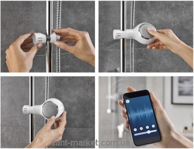 Grohe 26268LV0 - водонепроницаемая акустическая система Aquatunes с возможностью прослушивания музыки через Bluetooth.