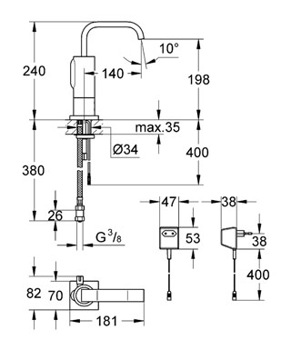 Смеситель для раковины электронный сенсорный Grohe коллекция Allure E хромм 36095000