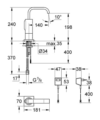 Смеситель для раковины электронный сенсорный Grohe коллекция Allure E хром 36096000