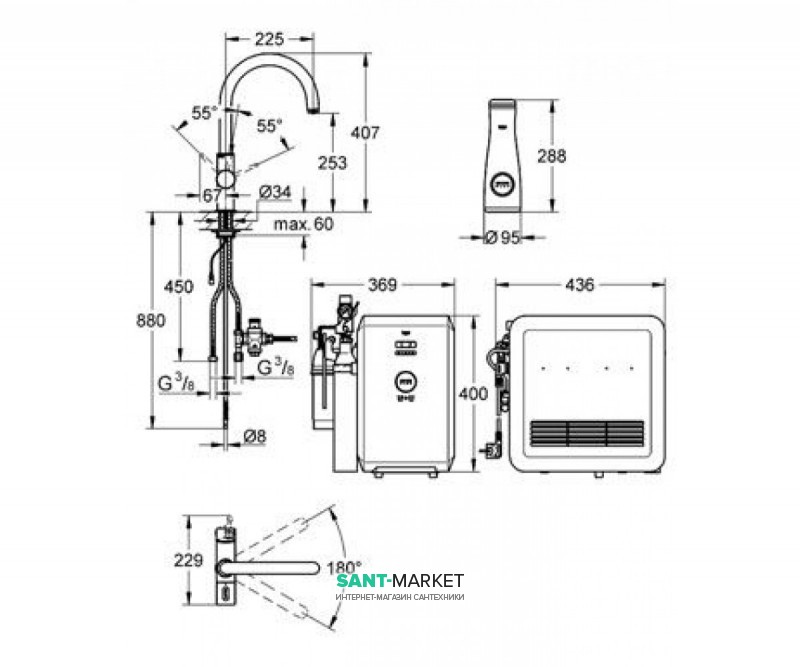 Эксплуатация однорычажного смесителя возможна с накопителями, работающими под давлением, прямоточными водонагревателями с термическим управлением, прямоточными водонагревателями с гидравлическим управлением. Эксплуатация с безнапорными накопителями (открытые водонагреватели) не предусмотрена! Смеситель GROHE Blue® Chilled & Sparkling с встроенным охладителем-карбонизатором разработан для личного пользования, а не для применения в производственных целях.