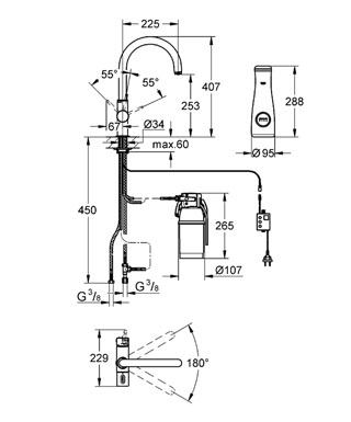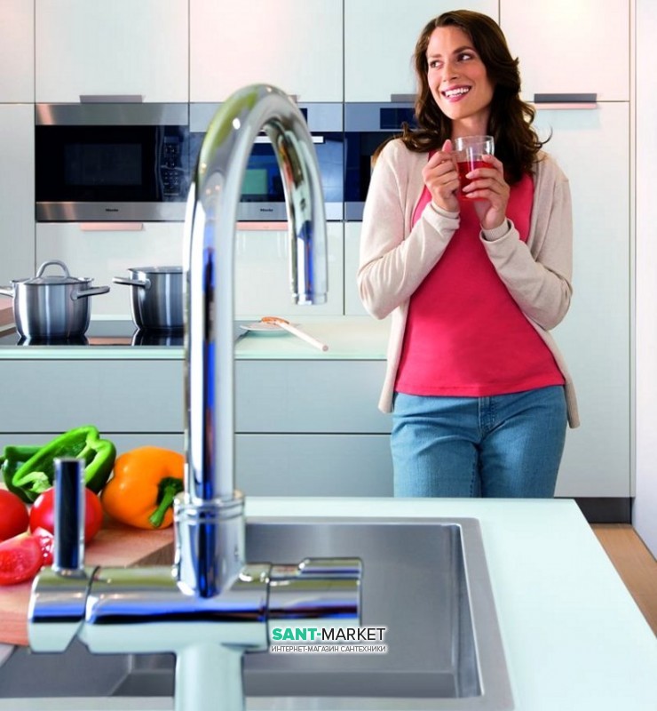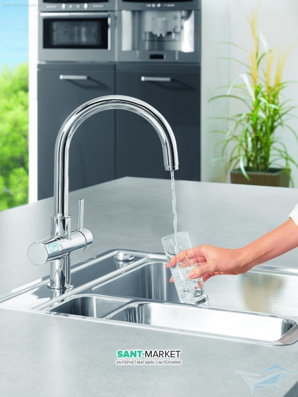 - GROHE Blue® Смеситель однорычажный для мойки с функцией очистки водопроводной воды