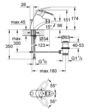 GROHE Chiara Смеситель однорычажный для биде DN 15