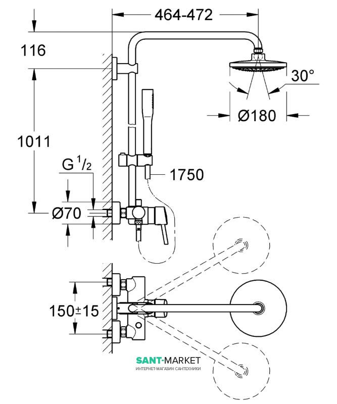 GROHE Concetto Душевая система для настенного монтажа 23061001